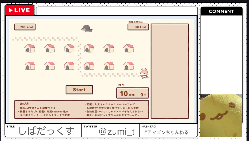 OBSの画面 ゲームはこちら!→ https://unityroom.com/games/shibadax