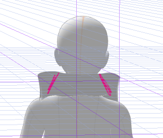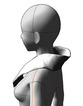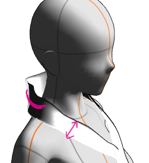 カーブで首の後ろのカーブを作る→押し出しで胸の前の重なりを作っていく