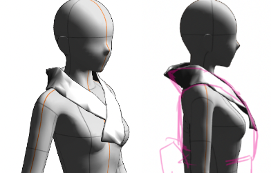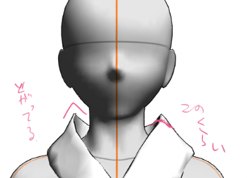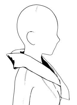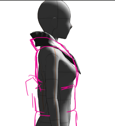 ちなみにClipStudio上では襟だけ小さくできません。(別レイヤーにすればできるけど、素体と組み合わせられない(首に通せない))