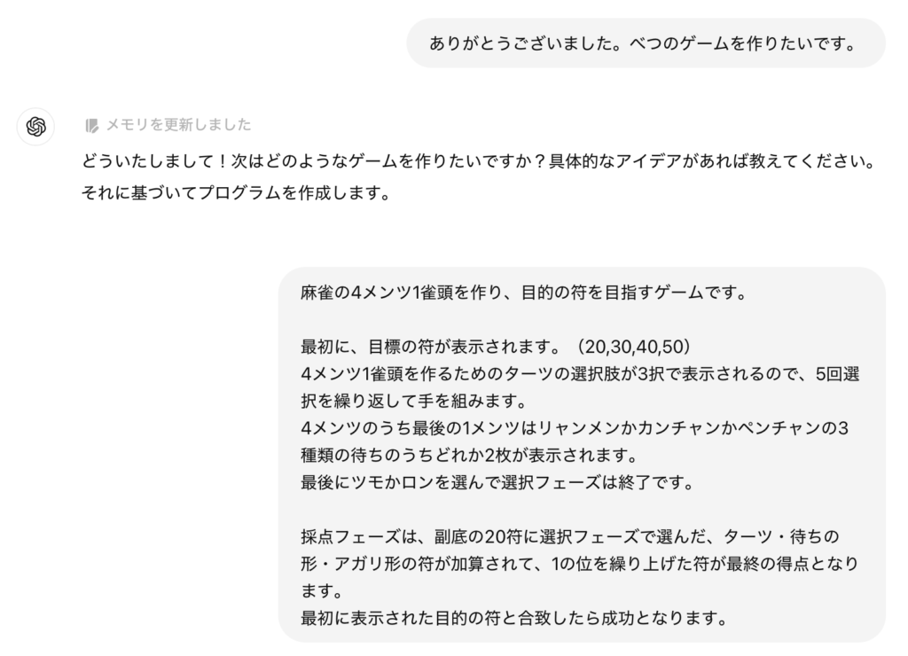 ChatGPTを使っていて、そういえばゲームとか作らせることができるらしいと聞いたので、やってみました。