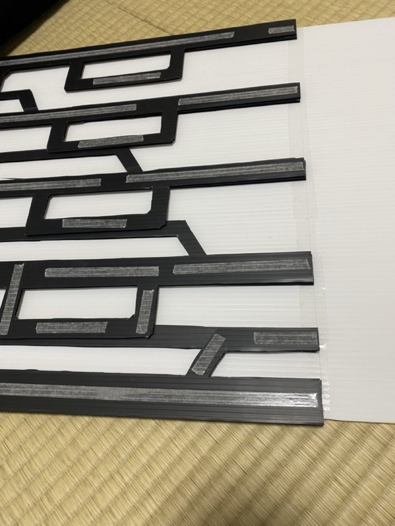 両面テープで白いプラ段に