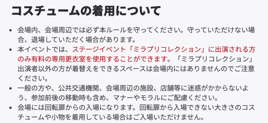 ステージイベント「ミラプリコレクション」出演者以外は更衣室がないのです!