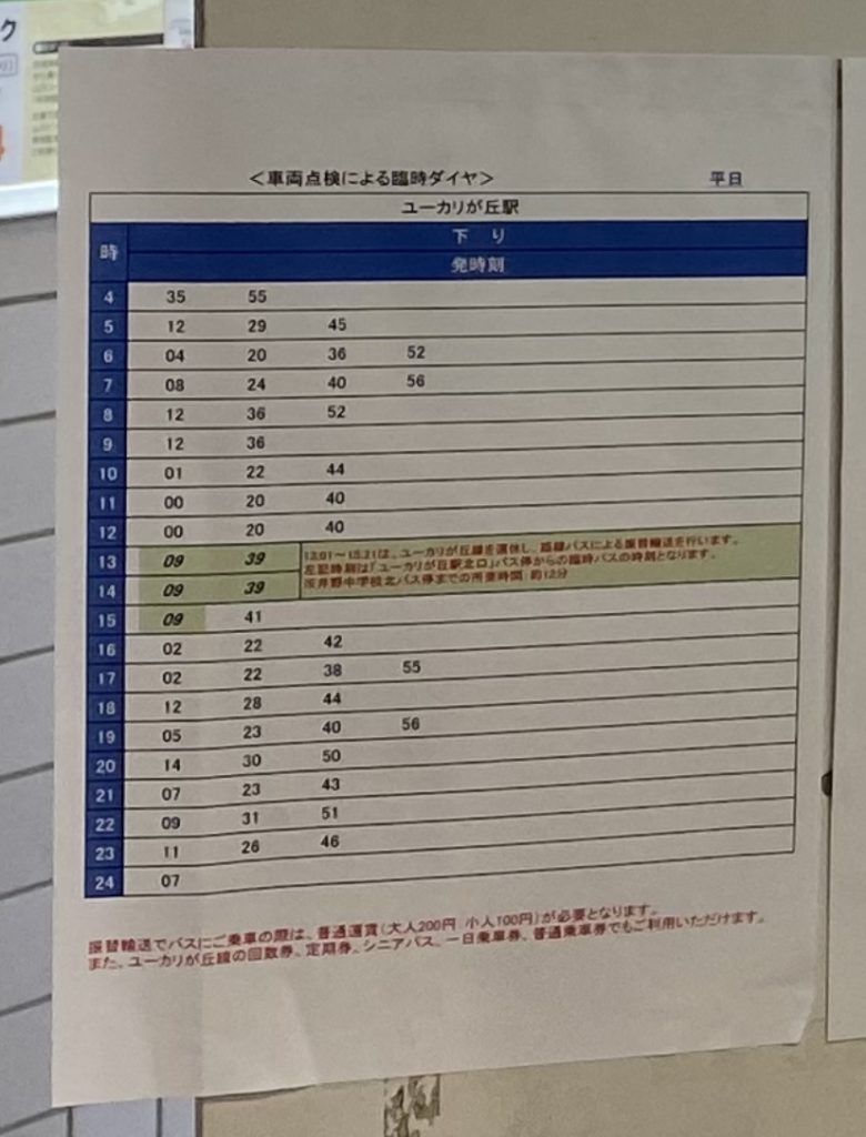 車両点検のため、13〜15時はバスの振替輸送中とのこと。