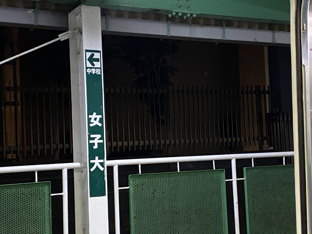 今回の旅の最大の目的だった「女子大駅」です!